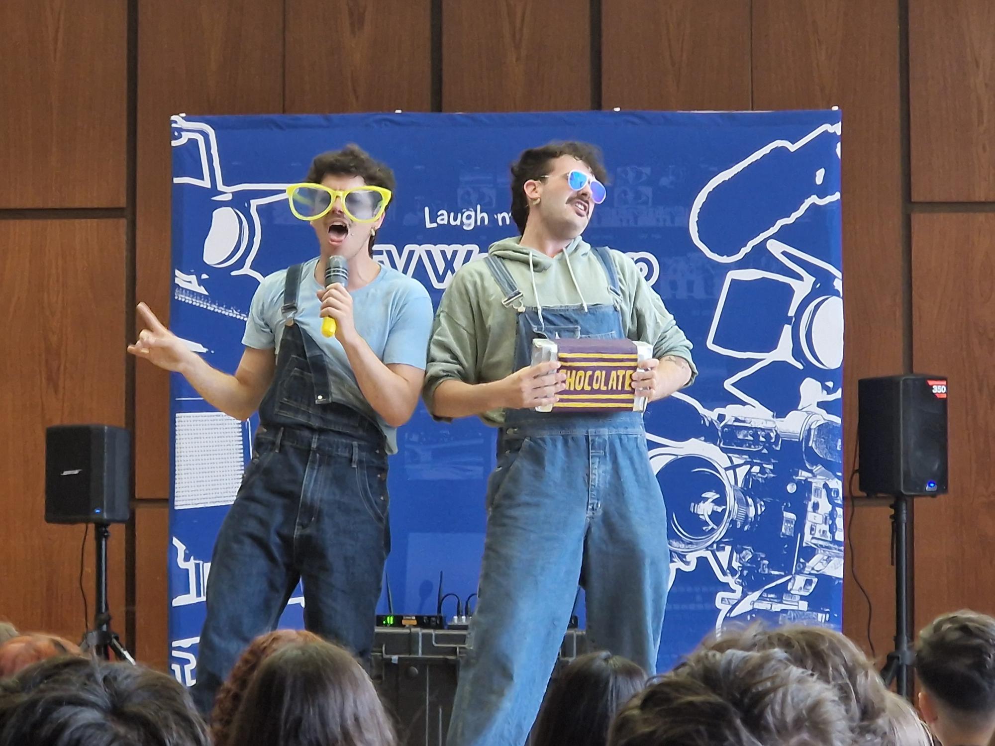 Am 23 09.2025 war es endlich so weit: The Ridiculous Rhyme Show machte Halt an der GHR! Wir erlebten einen Workshop, durchgeführt von zwei Schauspielern namens Josh und Thomas, der so schnell nicht vergessen wird.